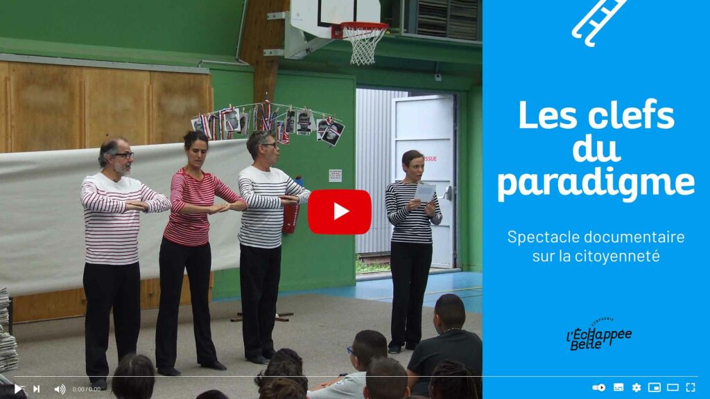Les clefs du paradigme est un spectacle sur la citoyenneté. Il interroge les grands principes de la citoyenneté et comment la faire vivre concrètement au quotidien.